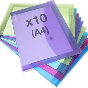 Popper Wallets, A4+, Assorted Transparent Colours, Pack of 10